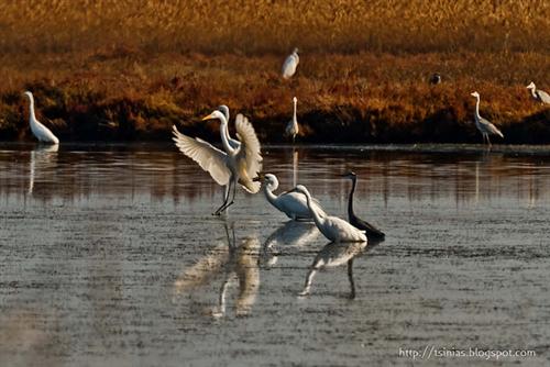 Στην περιοχή, σε διάφορες εποχές, έχουν παρατηρηθεί πάνω από 100 είδη πουλιών. Λευκοτσικνιάδες, σταχτοτσικνιάδες και πορφυροτσικνιάδες με ψηλά πόδια κι αρχοντικό βάδισμα, κατάμαυροι κορμοράνοι, φαλαρίδες και σκουφοβουτηχτάρια που κάνουν εντυπωσιακά μακροβούτια, χαλκόκοττες με πορφυρές και γαλάζιες ανταύγειες, χουλιαρομύτες με εντυπωσιακό ράμφος, πελαργοί, αγριόχηνες με υπέροχο πέταγμα, και εντυπωσιακά φοινικόπτερα, που όταν ο χειμώνας είναι γλυκός, τον περνούν στο Kοτύχι. Πιστά στο ραντεβού τους με τη φύση, μάς δίνουν την ευκαιρία να θαυμάσουμε την ομορφιά τους.