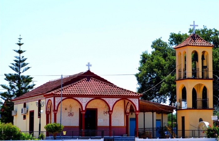 Σύμφωνα με τον Άγγλο περιηγητή των αρχών του 20ου αι., R. Rodd, αρχικά υπήρχαν 10 κίονες από γρανίτη, 4 από τους οποίους μεταφέρθηκαν σε άλλο ναό στα Λεχαινά. Αν και κάτι τέτοιο θα ήταν δυνατό, αυτοί δεν έχουν εντοπιστεί. Η κάλυψη πρέπει να γινόταν με οξυκόρυφη ξύλινη στέγη. κλίτους διακρίνονται ελάχιστα. Σε μερικά μόνο σημεία το ύψος τους ξεπερνά τα λίγα εκατοστά.