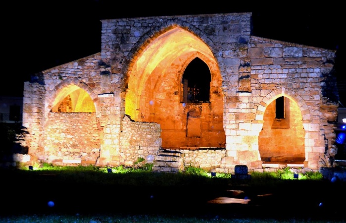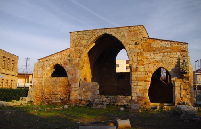 Διαγώνιες αντηρίδες ενίσχυαν τις γωνίες των παρεκκλησίων και της αψίδας του ιερού. Σήμερα διατηρείται μια κάθετη στη βορειοδυτική γωνία του βόρειου παρεκκλησίου. Σε αυτό το σημείο διακρίνονται και τα ίχνη από μια κλίμακα που οδηγούσε στο μιναρέ. Κατά την Τουρκοκρατία, το μεγάλο ανατολικό παράθυρο περιορίστηκε και προστέθηκε ένα μιχράμπ. Οι στέγες στο ανατολικό τμήμα προέρχονται από μεταγενέστερες επεμβάσεις, αλλά δεν φαίνεται να έχουν μεγάλη διαφορά από τις αρχικές. Ο ναός πρέπει να ήταν πολύ μεγάλος σε μέγεθος και πιθανότατα είχε 10 διαμερίσματα και εγκάρσιο κλίτος, το οποίο όμως δεν προεξείχε. Η οροφή του κεντρικού κλίτους πρέπει να ήταν λίγο υπερυψωμένη, κρίνοντας από τη διαφορά ύψους μεταξύ ιερού και παρεκκλησίων. Βέβαια, όλα αυτά είναι υποθέσεις, που δεν μπορούν να επιβεβαιωθούν από τα υπάρχοντα στοιχεία.