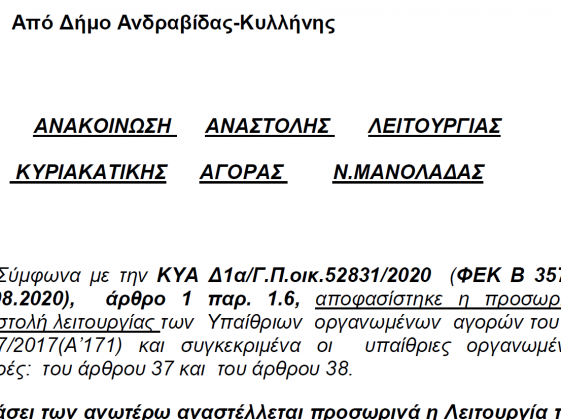 Έναν νέο θεσμό καθιερώνει ο Δήμαρχος Ανδραβίδας-Κυλλήνης κ.